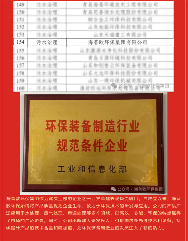 海普歐環(huán)保集團成立于2014年,位于山東省諸城市,是一家集設計、EPC總承包、裝備制造、安裝調試、智慧水務(wù)搭建、運維服務(wù)于一體的綜合性國家級高新技術(shù)企業(yè)及省級兩化融合企業(yè)。是中國環(huán)保產(chǎn)業(yè)協(xié)會(huì )會(huì )員單位、山東省環(huán)保產(chǎn)業(yè)協(xié)會(huì )理事單位,2022年被山東省環(huán)保產(chǎn)業(yè)協(xié)會(huì )評選為“山東省環(huán)保骨干企業(yè)”。