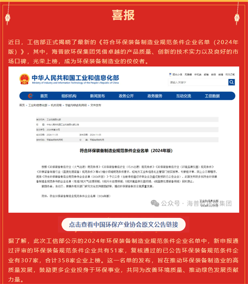 | 環(huán)保裝備制造行業(yè)規范條件企業(yè) | 國家級 | 工信部 |