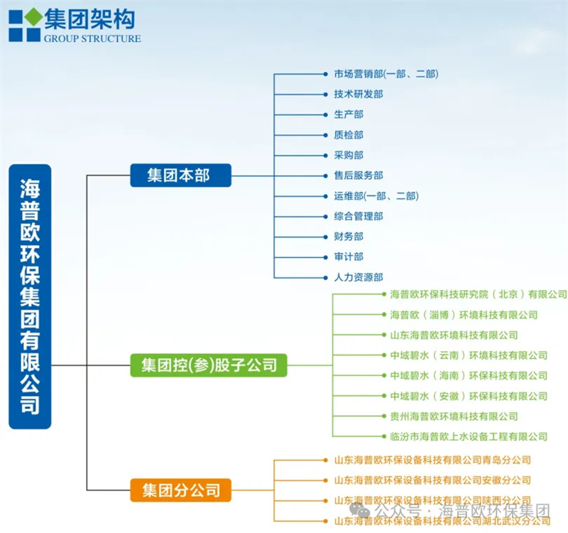公司擁有環(huán)境工程專(zhuān)項設計乙級資質(zhì),環(huán)保工程專(zhuān)業(yè)承包壹級資質(zhì)、市政公用工程施工總承包二級資質(zhì)、建筑機電安裝工程專(zhuān)業(yè)承包二級資質(zhì)等資質(zhì),并通過(guò)了ISO質(zhì)量、環(huán)境、職業(yè)健康安全管理體系認證。同時(shí)取得了水污染治理設施運維能力評價(jià)二級,實(shí)現從設計、生產(chǎn)、安裝、調試、到運維的產(chǎn)業(yè)鏈一條龍服務(wù)。集團架構